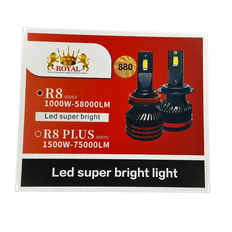هدلایت فن دار پایه 880 برند رویال یکی از پیشرفته‌ترین محصولات روشنایی خودرو است که با بهره‌گیری از فناوری R8 PLUS و چیپ LED SUPER BRIGHT LIGHT، نوری فوق‌العاده قدرتمند و شفاف را ارائه می‌دهد. این هدلایت با توان 1000 وات و شدت روشنایی 58000 لومن، تا 500% روشنایی بیشتری نسبت به لامپ‌های فابریک خودرو فراهم می‌کند. طراحی حرفه‌ای، مصرف انرژی پایین، برد نور گسترده و فن خنک‌کننده هوشمند از ویژگی‌های بارز این محصول هستند.